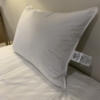 Almohada MITAD DE DOWN ALTERNATIVO y MITAD PLUMA NATURAL 95/5, de estándar Europeo EN-12934 Clase I, tela especial anti pluma 100% de algodón de 233 hilos, proceso silky touch, soporte suave de excelente comodidad. El estándar europeo se refiere a la pluma mas limpia, mas tierna, mas corta de 2 a 4 cms. de largo. Estas almohadas son Hipoalergenicas debido a la calidad de la pluma natural clase I y Certificación Textil Oeko-Tex Standard 100 clase 1